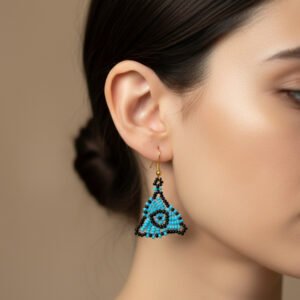 Aquageo Handcrafted Bead Drop Earring – Blue & Black Geo Triangle