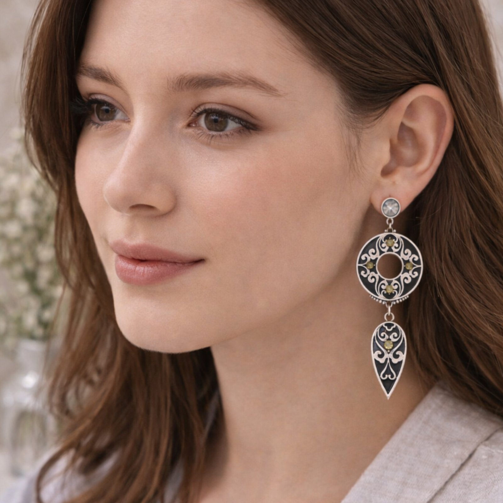 Aura Vintage Dangle Earrings – Silver & Black Style