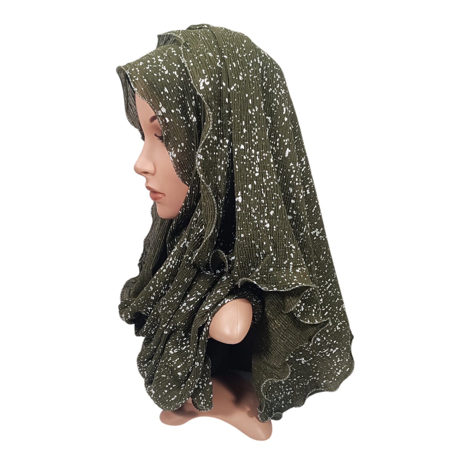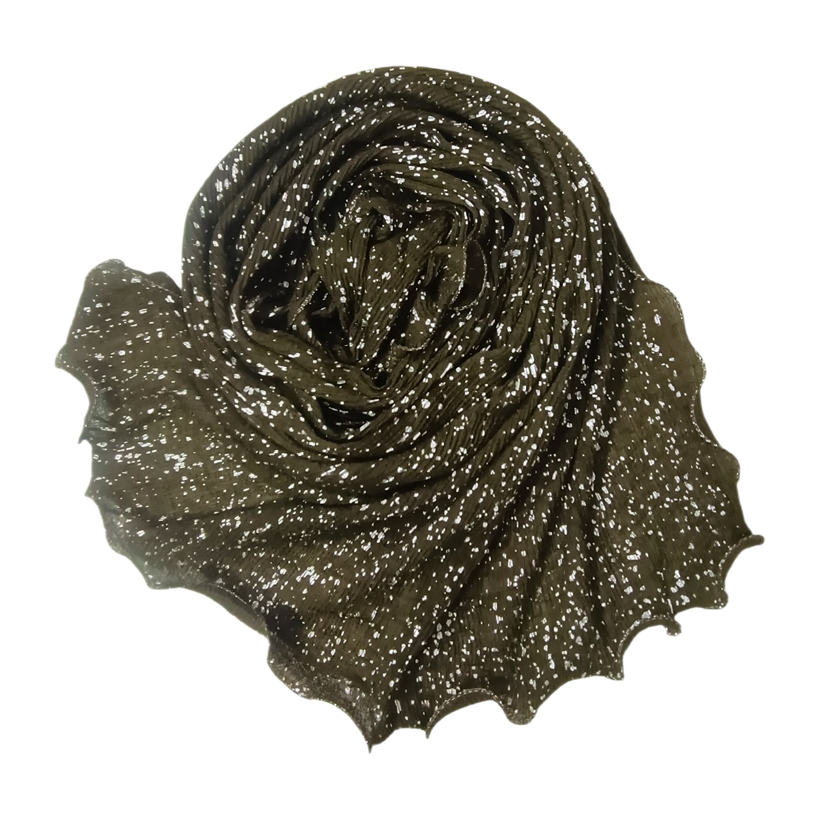 The Crinkle Cotton Hijab Scarf brings a fun and modern look to your daily style. This wrap features a soft cotton fabric with a unique crinkle texture that adds volume. Because it has silver metallic sprinkles, it offers a subtle glow that catches the light beautifully. In addition, this piece suits anyone who wants a comfortable scarf with a touch of shine. It stays in place well and feels very light on your head all day long.