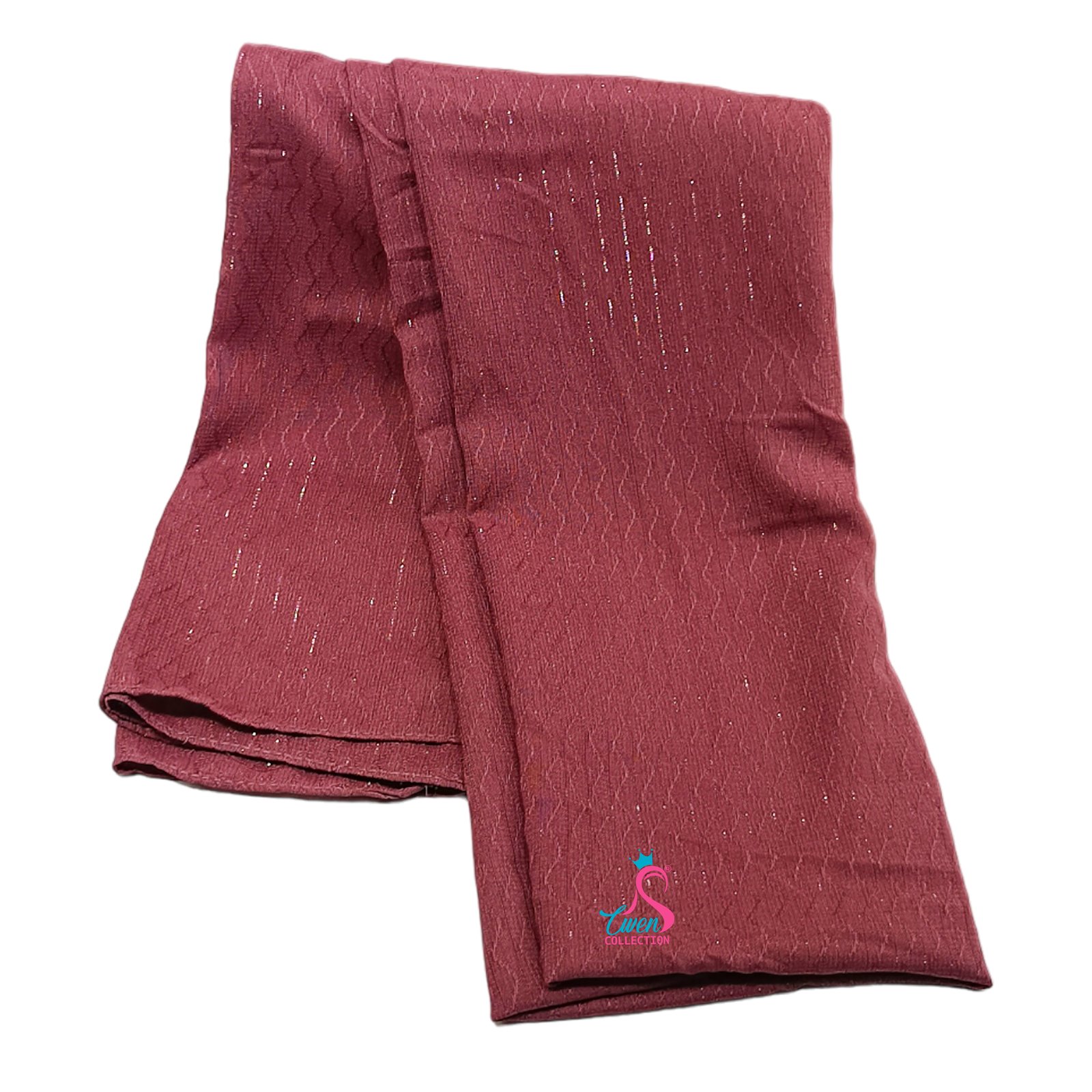 Cwen Collection Turkish Rose Chiffon Cotton Hijab Scarf. This lightweight and breathable head scarf features subtle silver glitter stripes for an elegant look. Perfect for all-day comfort and versatile styling.